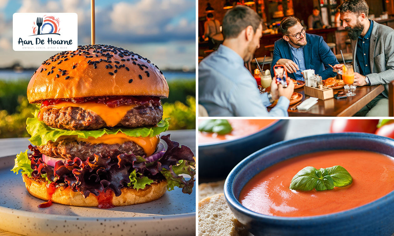 Geniet van een heerlijk 2-gangen keuzediner bij Aan de Hoarne: sfeervol dineren met een schitterend uitzicht over het water