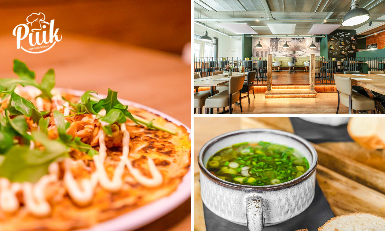 Geniet van een uitgebreid 2- of 3-gangen pannenkoekendiner bij Puik: met bij het hoofdgerecht ruime keuze uit zoete en hartige pannenkoeken