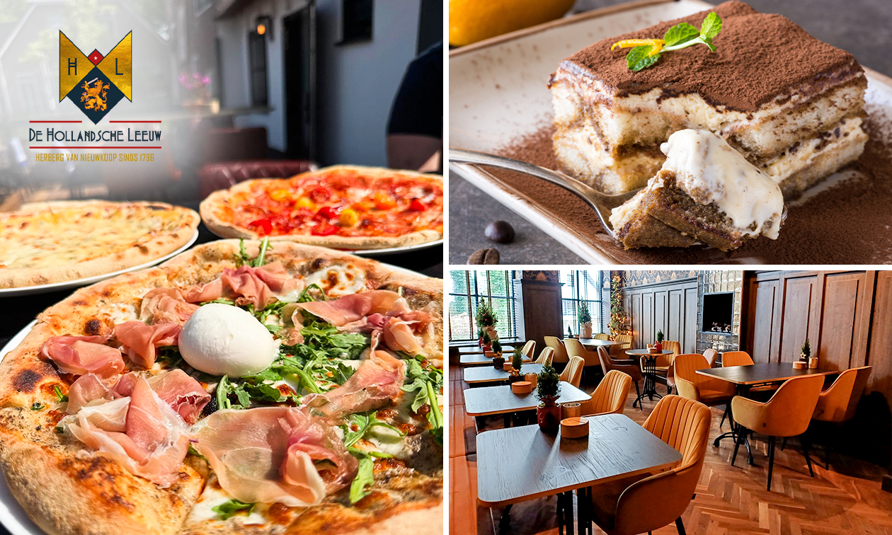 Geniet van een heerlijk 3-gangen keuzediner bij Herberg de Hollandsche Leeuw: bij het hoofdgerecht een verrukkelijke pizza naar keuze of vlees of vis van de dag