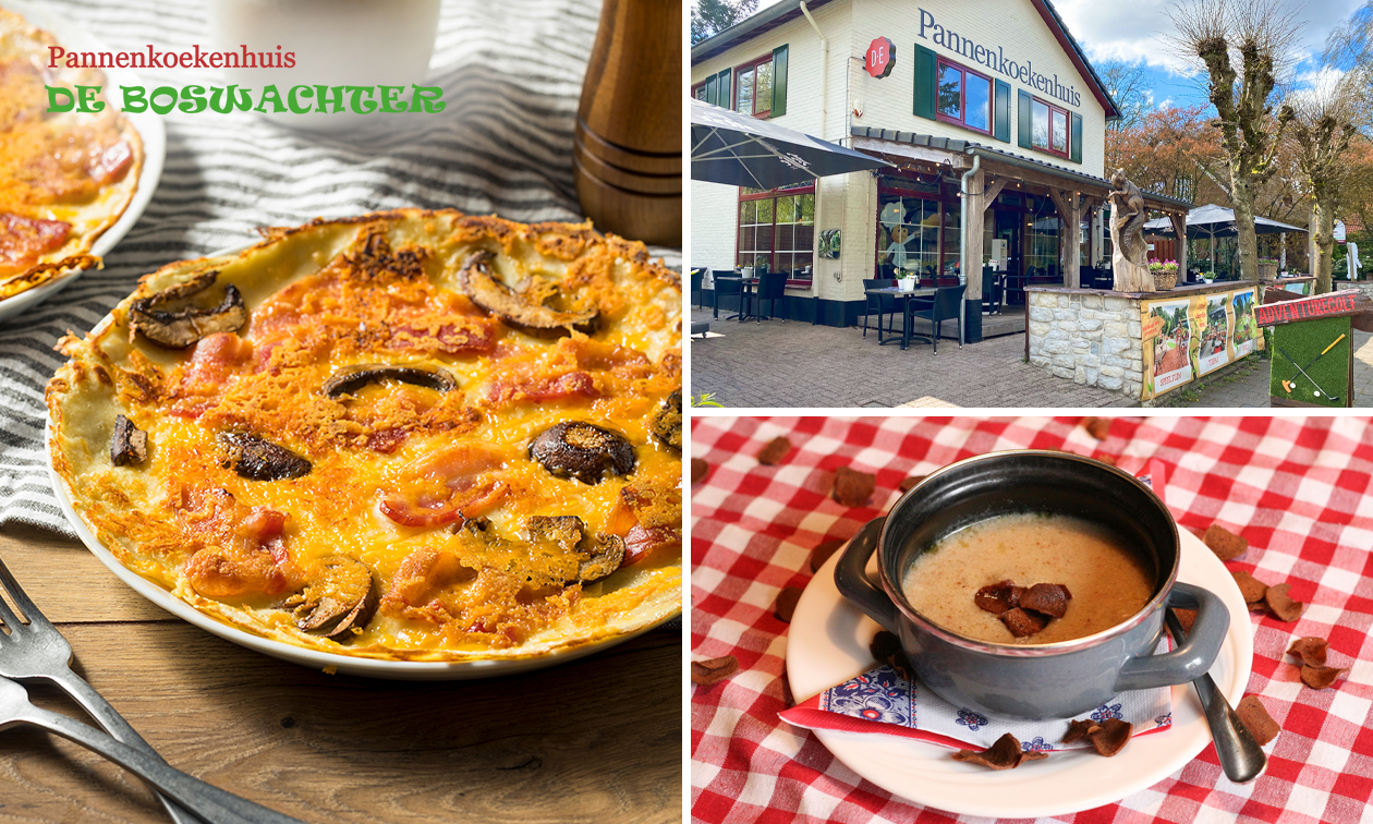 - Geniet van een uitgebreid 3-gangen keuzediner bij Pannenkoekhuis De Boswachter