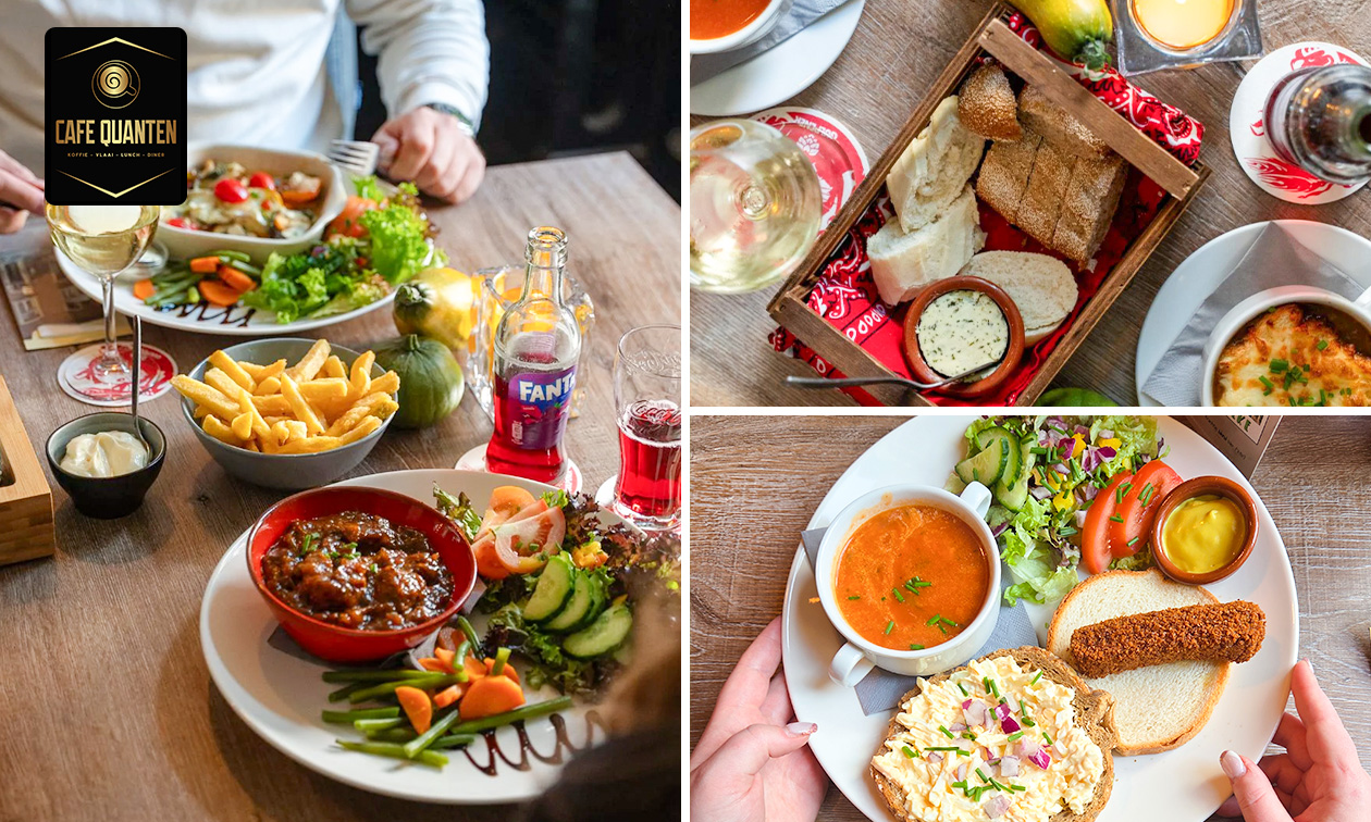 Geniet van een verrukkelijk 3-gangen keuzediner bij Café Quanten in het gezellige Limburgse Mheer: of kies voor een heerlijk 12-uurtje