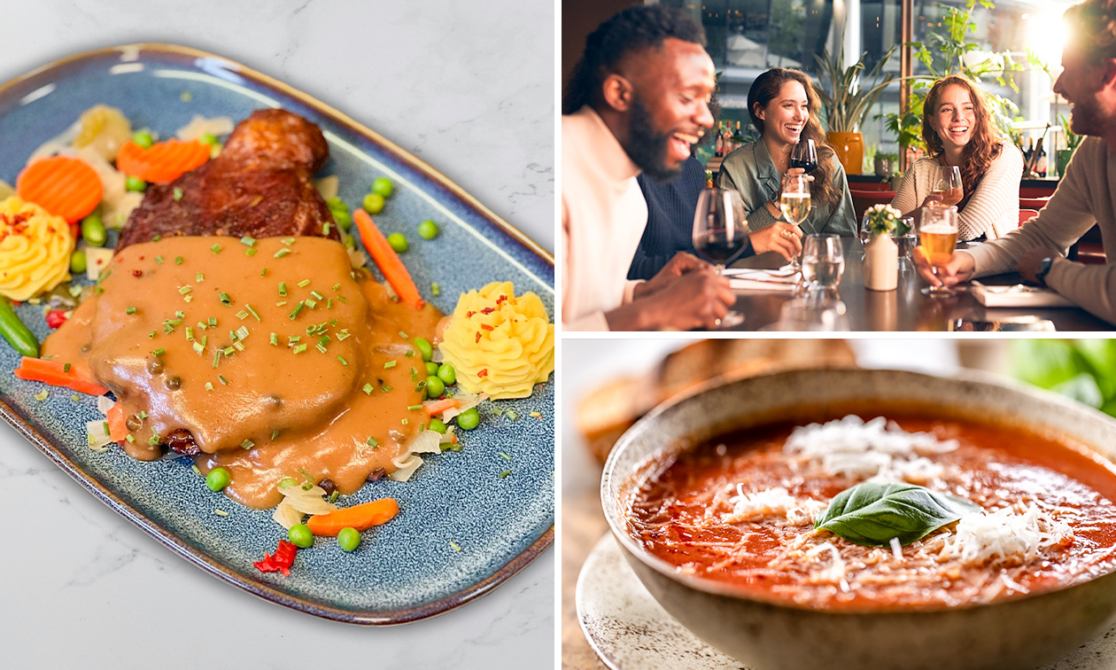 - Geniet bijvoorbeeld van gebonden tomatensoep, boerenschnitzel en een coupe advocaat