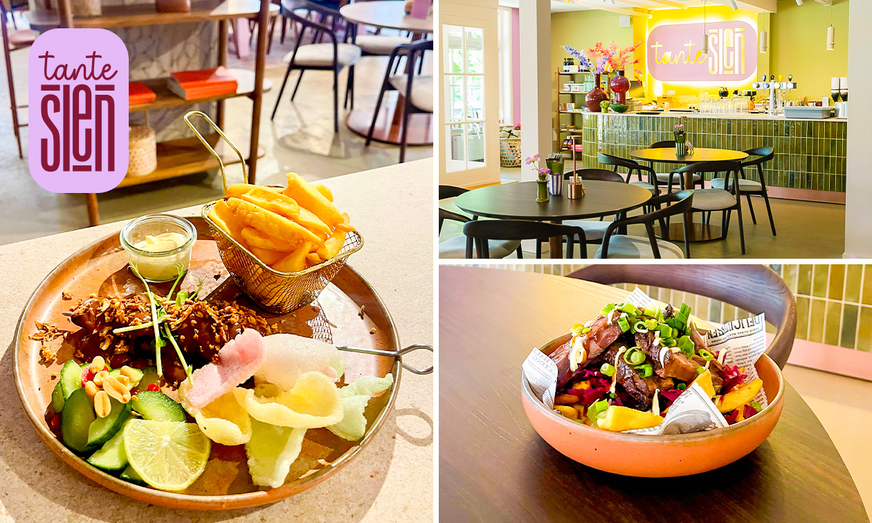 Heerlijk 3-gangendiner à la carte inclusief brood met smeersels bij Tante Sien: geniet bijvoorbeeld van zalmtartaar, klassieke kipsaté en limoncello-tiramisu