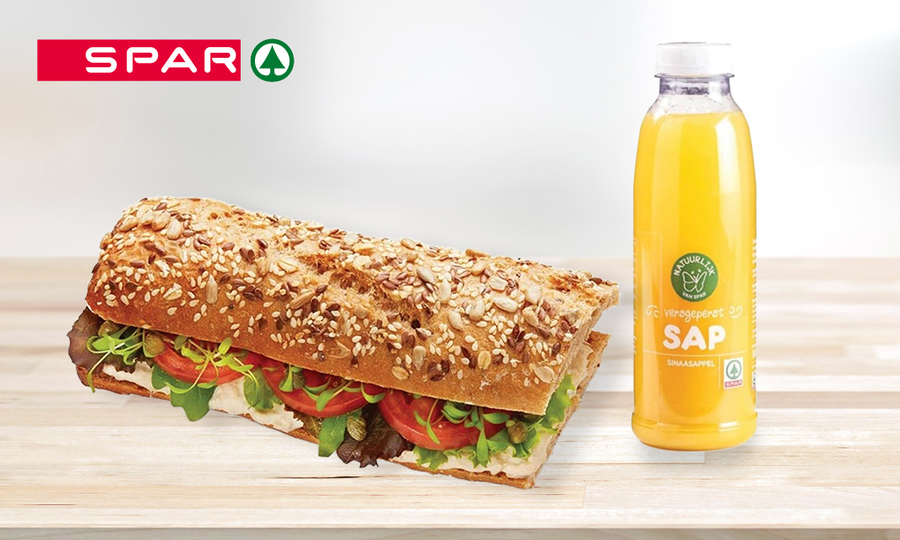 Geniet van een heerlijk belegd broodje naar keuze inclusief verse sinaasappelsap bij SPAR City Den Bosch: kom jouw bestelling gemakkelijk afhalen