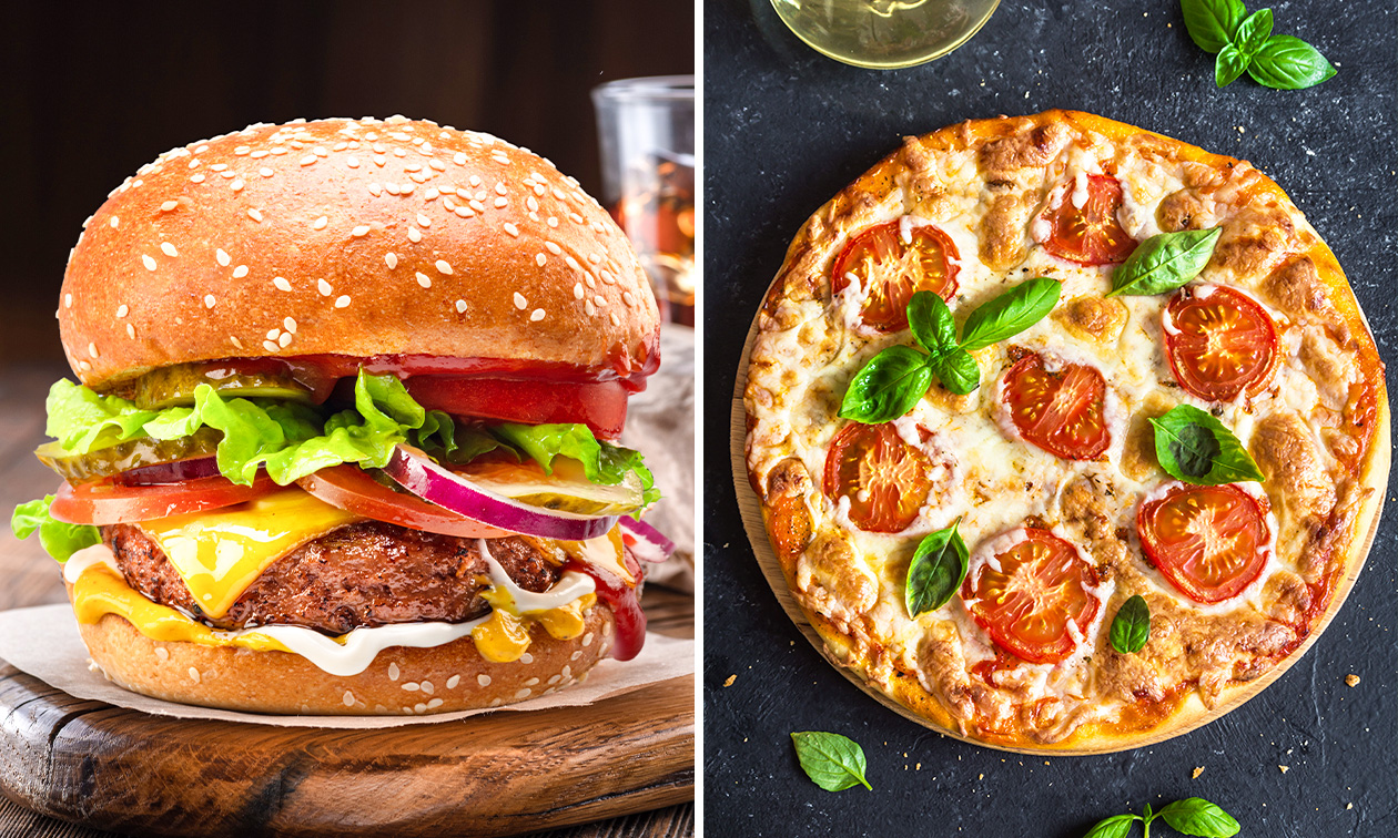 - Geniet van een heerlijke burger- of pizzamenu