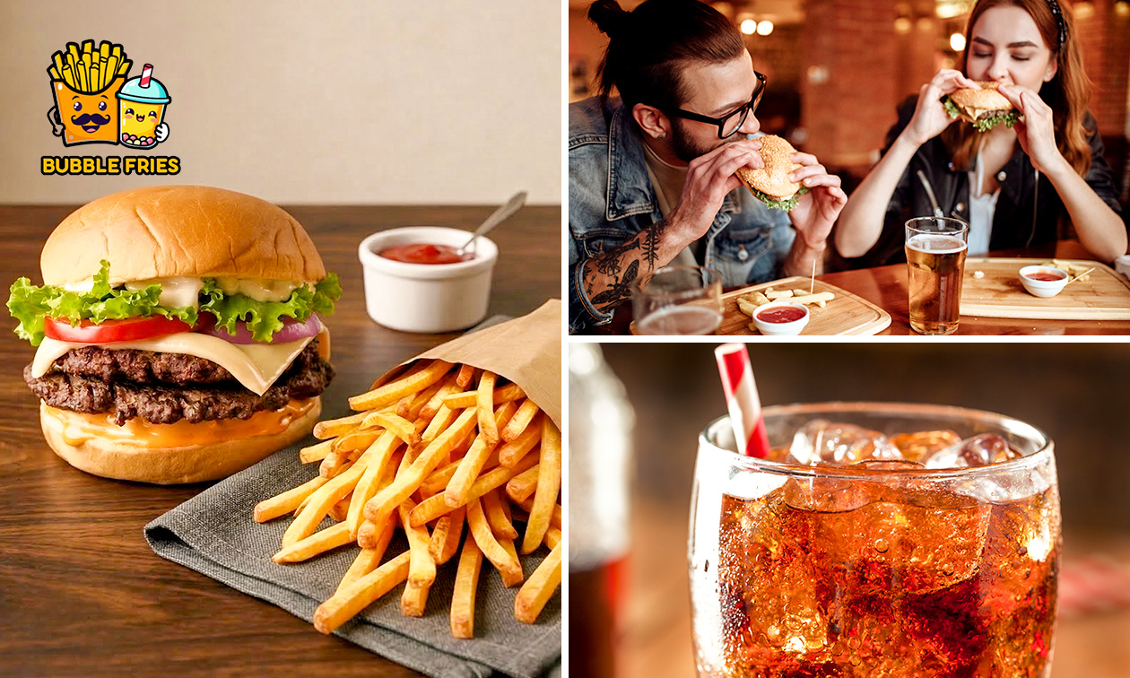 Geniet van een heerlijke burger voor afhaal of dine-in bij Bubble Fries in Horst: inclusief een grote friet met saus en frisdrank naar keuze