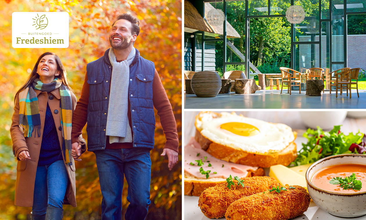 Geniet van een gezellige dag in de buitenlucht met een wandelarrangement naar keuze bij Buitengoed Fredeshiem: bij aan- en terugkomst warm je op in het gezellige restaurant