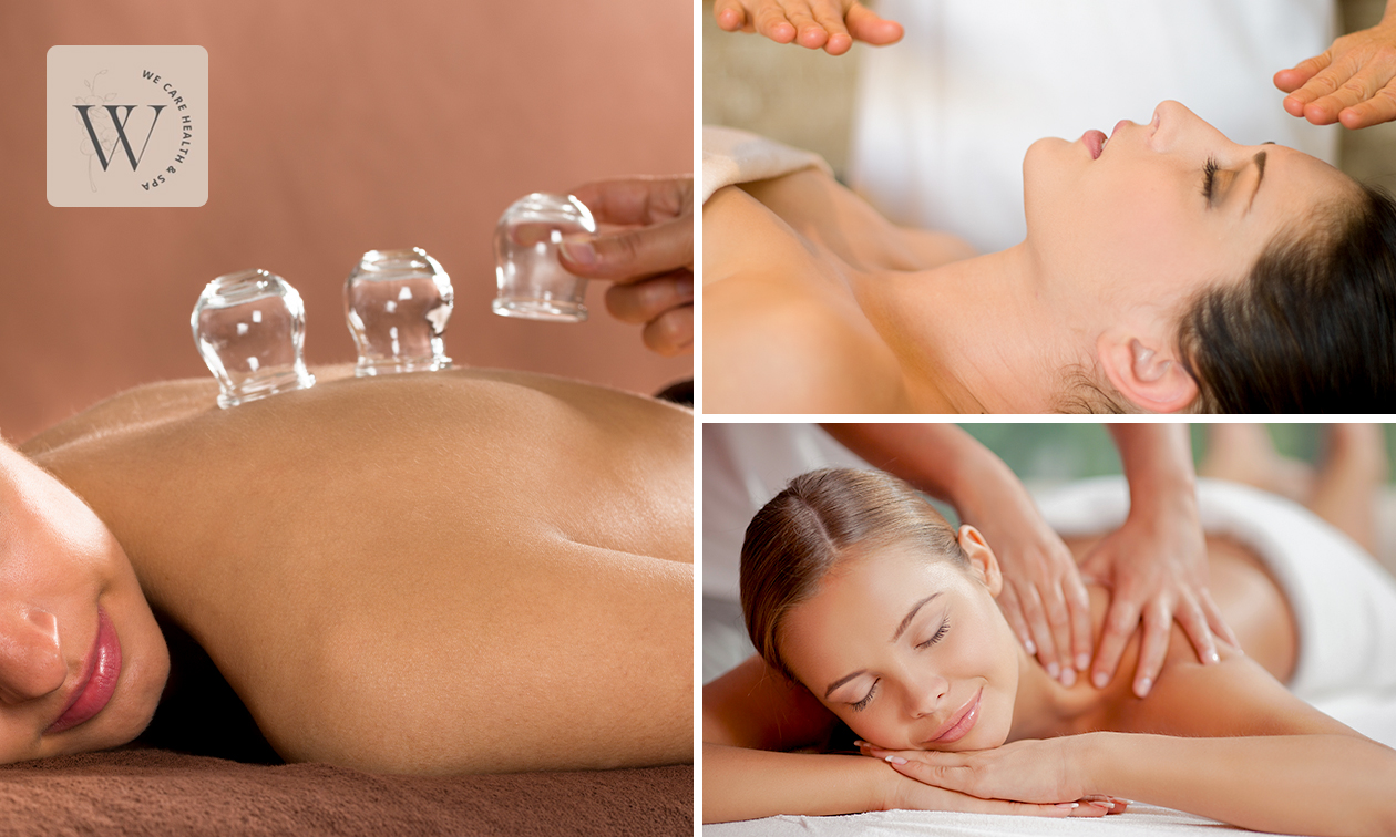 Kom in balans met cupping en een reikibehandeling en/of een ontspannende hoofd- en nekmassage (60 of 90 minuten) bij We Care Health & Spa: of ga voor een ontspannende hotstonemassage van 45 minuten