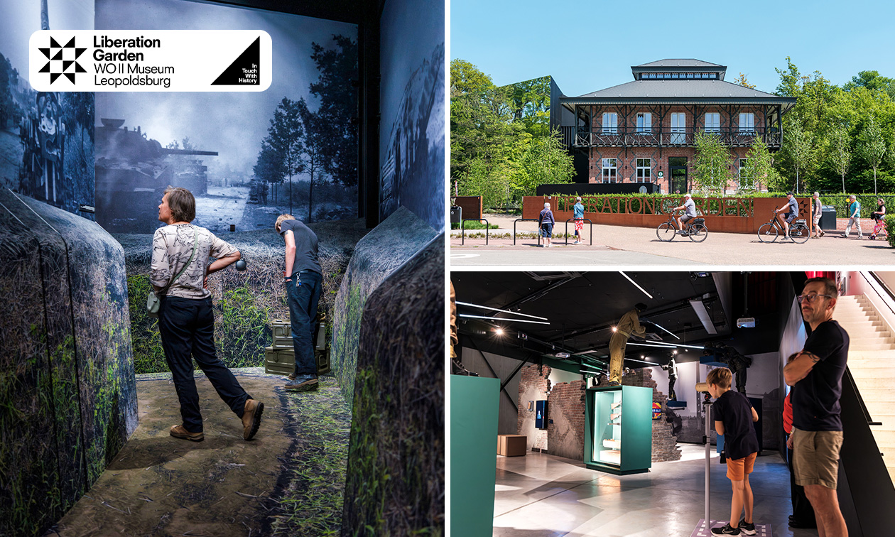 Entree voor het indrukwekkende oorlogsmuseum Liberation Garden in Leopoldsburg: stap in de schoenen van bezetters, verzetsmensen en bevrijders en ontmoet historische personages