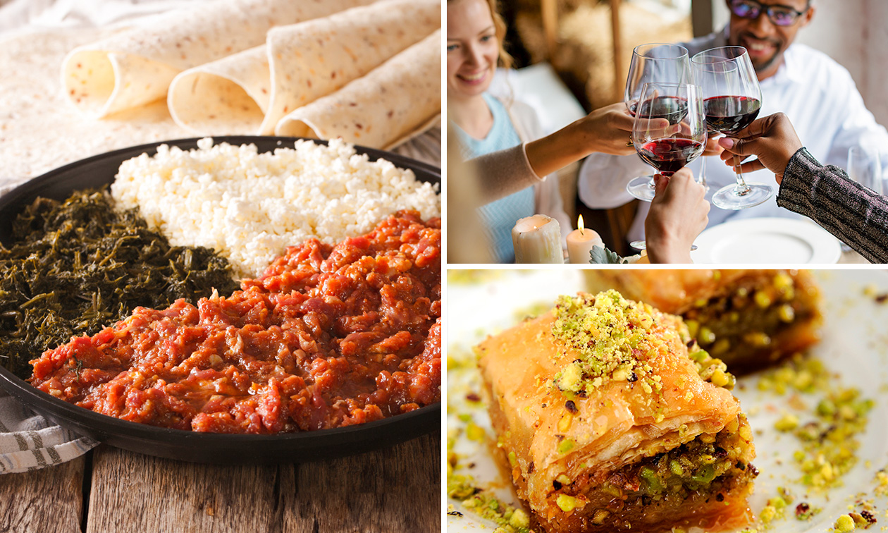- Bij een 3-gangendiner geniet je van baklava met yoghurt als afsluiter