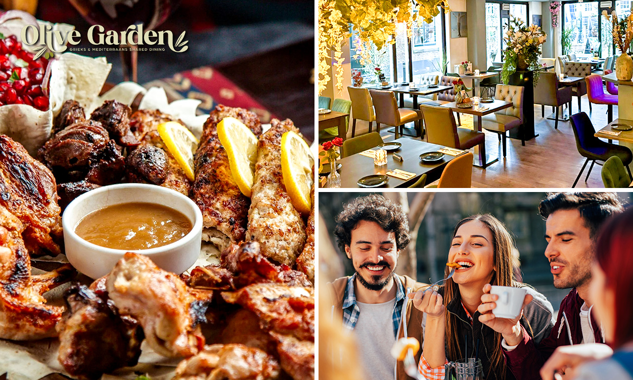 Proef de smaken van Griekenland en het Middellandse Zeegebied met een shared dining-diner bij Olive Garden Wijk bij Duurstede: keuze uit vlees, vis en/of vega, inclusief een heerlijk dessert