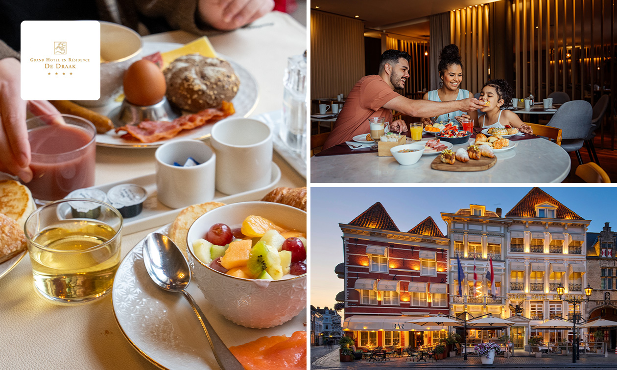 Begin jouw dag goed met een luxe ontbijtbuffet bij Grand Hotel De Draak op de markt in Bergen op Zoom: inclusief bruisend glas cava