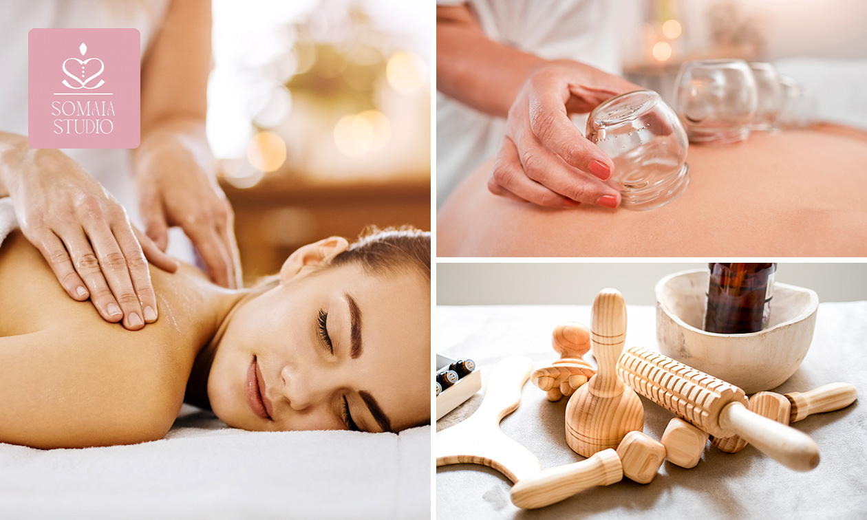 Ervaar pure ontspanning met een massage naar keuze van 30, 45, 60 of 75 minuten bij Somaia Studio: ga voor een ontspannings-, cupping-, afslank- en/of ASMR-massage