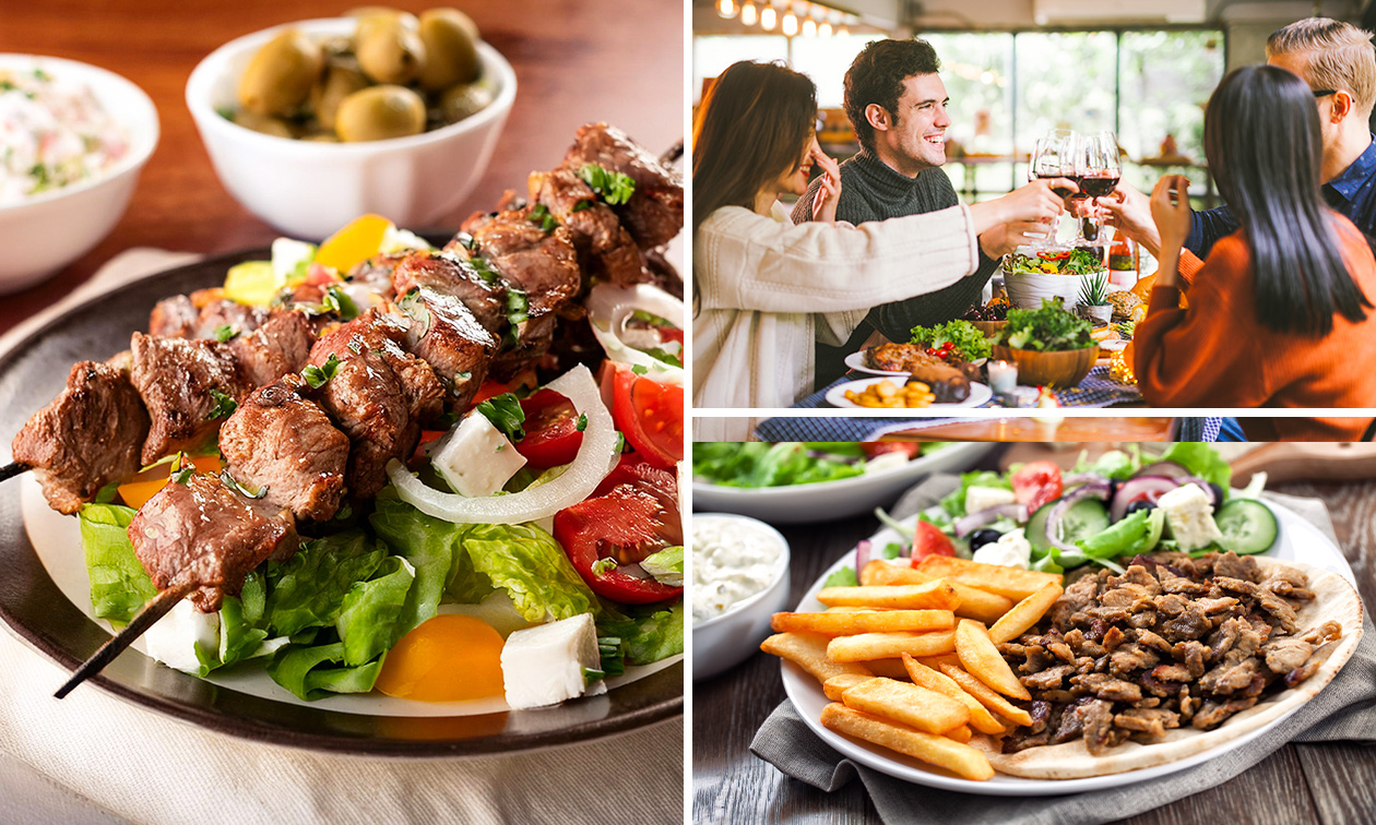 - Proef een goed gevulde schotel met gyros, bifteki, souvlaki en kipfilet