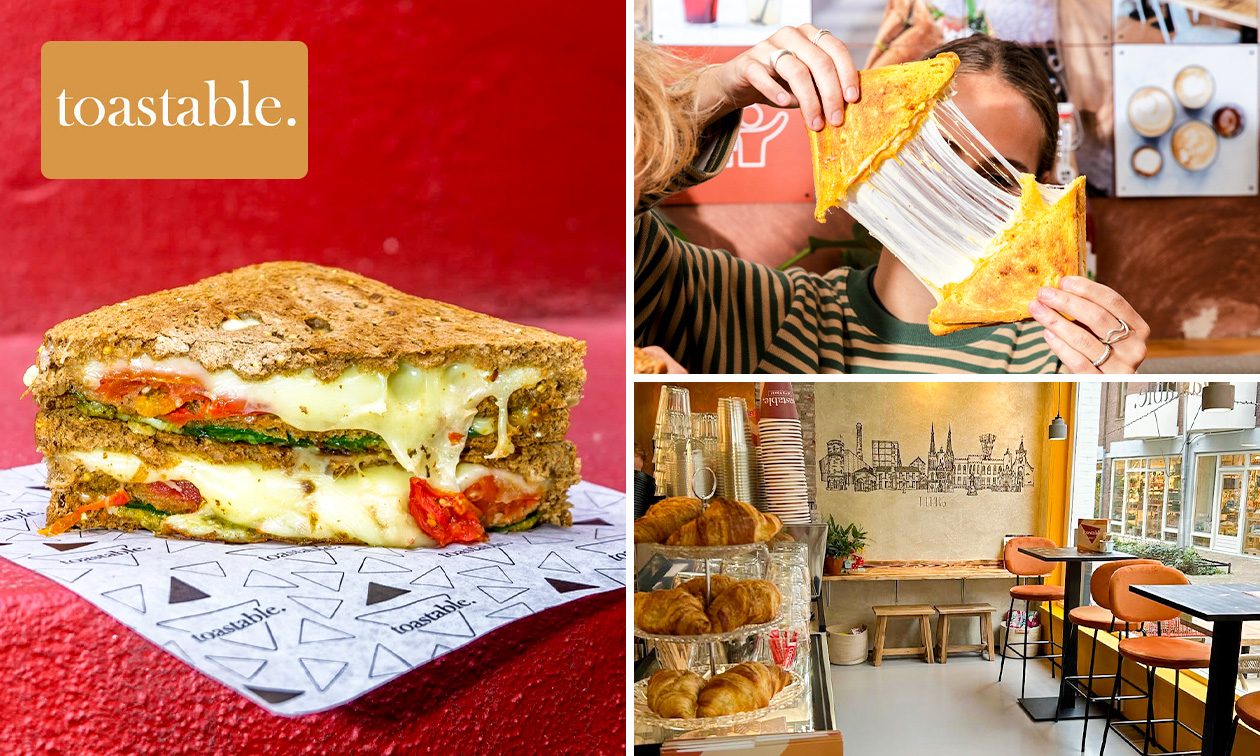 Start je ochtend of middag goed met een bezoekje aan Toastable in het centrum van Tilburg: geniet van een ontbijt met crosti + warme drank of lunch met een driedubbele tosti + limonade