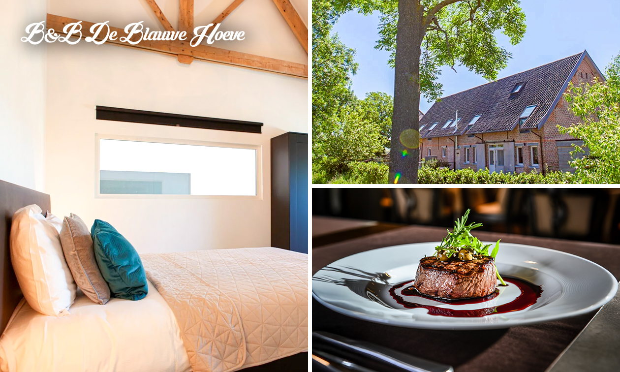 Voor 2 personen: 1 of 2 overnachting(en) inclusief ontbijt, 3-gangendiner à la carte en een welkomstdrankje bij De Blauwe Hoeve in Zwijndrecht