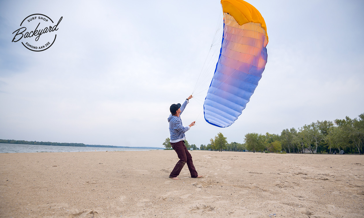 1,5 uur powerkiten inclusief instructie bij Backyard Beach House op het strand in Egmond aan Zee: voel de kracht van de wind en laat je meevoeren door de elementen