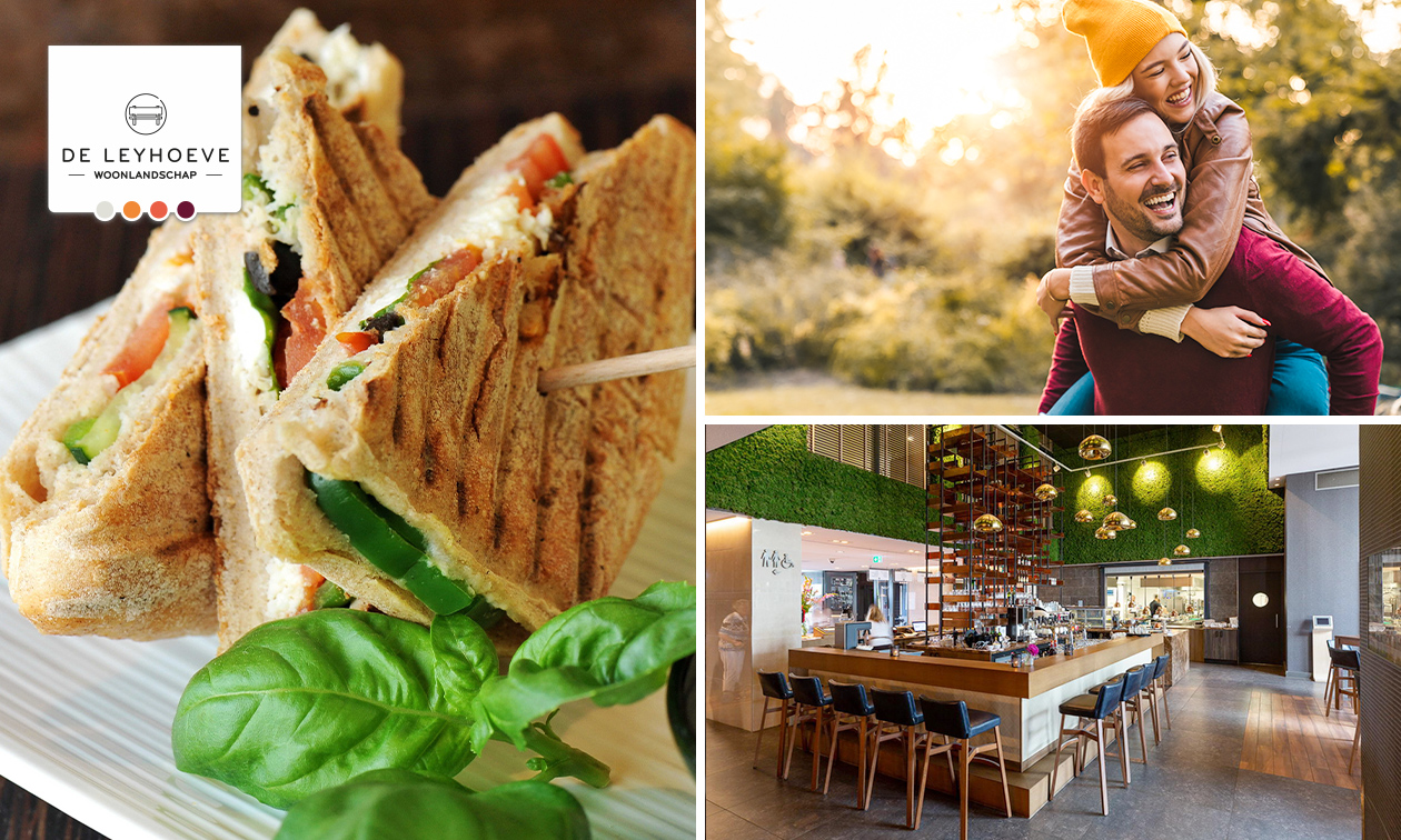 Shared lunch of compleet wandelarrangement bij Brasserie Woonlandschap De Leyhoeve in Tilburg: ontvangst met koffie of thee en gebak, een wandeling naar keuze en bij terugkomst een heerlijke 2-gangenlunch