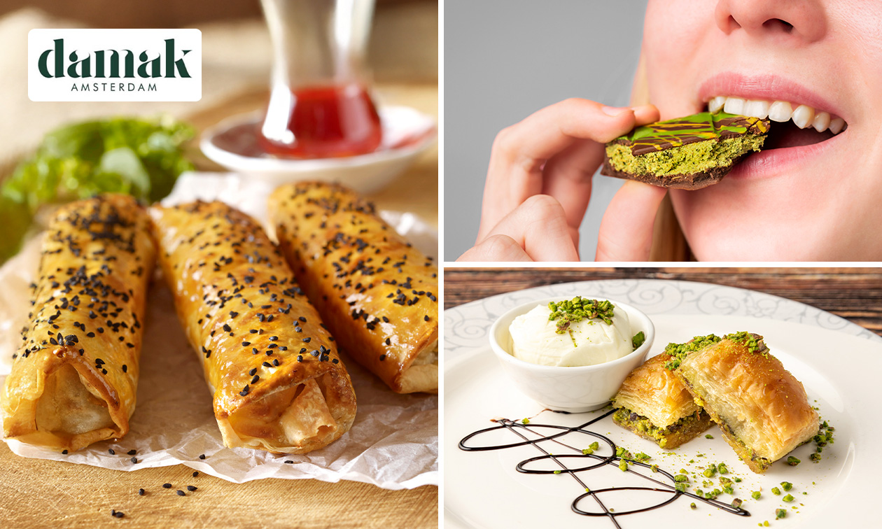 Waardebon ter waarde van 20 euro te besteden op het gehele assortiment van Damak Amsterdam: of ga voor cheesecake, 3 stuks baklava of 3 böreks inclusief drankje naar keuze